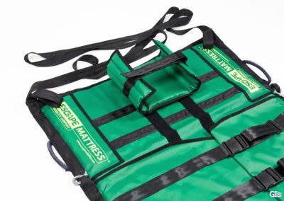 - Mit einer Escape-Mattress® Bariatric kann eine hilfsbedürftige und adipöse Person (bis zu 300 kg Traglast) in liegender Position über Treppen und Flure in Sicherheit gebracht werden.