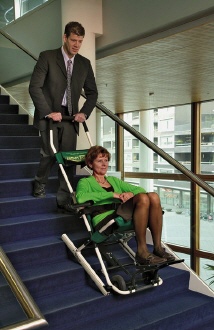 - Der Evakuierungsstuhl Escape-CARRY Chair® ist die ideale dauerhafte und nachhaltige Lösung um Personen in sitzender Position sicher über die Treppen zu evakuieren - sowohl TREPPAB als auch TREPPAUF (hier mit Tragegriff 2 Personen als Helfer).